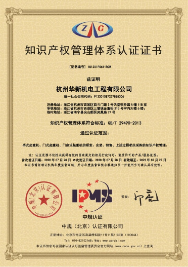 2021年11月5日,杭州华新机电工程有限公司荣获“杭州市专利示范企业”荣誉称号。