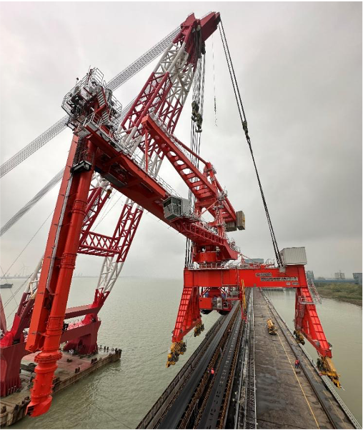 为不影响业主码头的正常生产,自11月16日从华新机电张家港码头总装场地开始,在项目组的科学统筹谋划下,工作人员加班加点,克服了大雨、夜间作业的困难,鼓足干劲,经过四天三夜连续工作后,将该台螺旋卸船机安全地运至业主码头并成功吊装就位,后续将在短暂的现场调试后开始投入试运行。