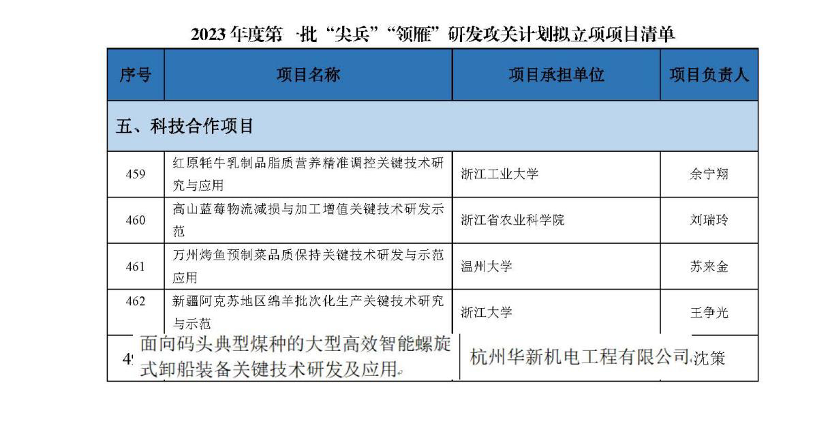 根据《浙江省重点研发计划暂行管理办法》,近日,浙江省科学技术厅公布了2023年度尖兵领雁研发攻关计划立项名单,公司申报的项目获批立项。