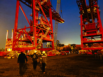 夜间作业,党员带头保交付。近期,公司有5个项目共9台设备在大新码头同时进行整装调试。为保证项目顺利交付,港机党支部党员充分发挥模范带头作用,带领员工加班加点、不分昼夜推进设备安装调试工作。针对夜间作业,港机党支部以党建促安全,牵头成立夜间安全巡逻队,对项目现场各个角落进行认真细致地巡逻检查,推动作业区安全监督和管理,确保顺利完成全部设备的整体发运工作。