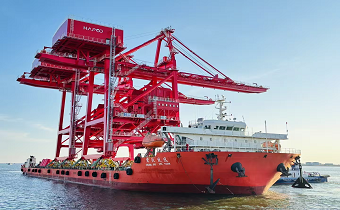 面对工期紧张、作业环境复杂(风雨、潮汐)等多重挑战,华新机电港机事业部全体员工上下一心,迎难而上。领导干部深入一线靠前指挥,技术骨干24小时轮班盯控现场,施工队伍全力以赴抢抓宝贵的作业窗口期。从设备组装、固定绑扎,到滚装上船、通航运输,再到目的港吊装上岸,项目团队始终将安全与质量置于首位,通过精细化管理和全程把控,有效应对了各项风险挑战。
