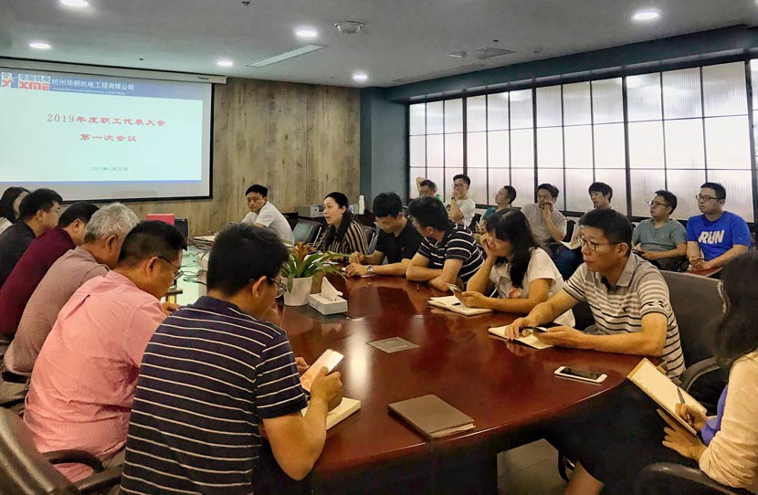 为更好地发挥工会组织在“促进企业发展,保障职工权益”中的积极作用,根据《工会法》和《中国工会章程》的相关规定,华新机电于5月24日召开了2019年度职工代表大会第一次会议进行工会委员会的换届选举,会议由公司纪委书记、党群工作部部长胡萍主持,公司党委书记、董事长谭竹青参加了会议。