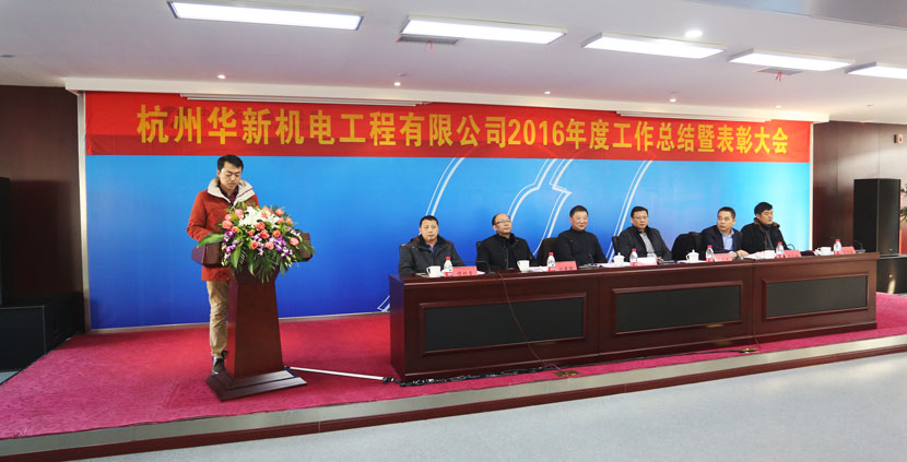 2017年1月21日,一年来披星戴月、四处奔波、风尘仆仆的华新机电同仁团聚一堂,召开了2016年度的工作总结暨表彰大会。天桥起重肖建平董事长,邓乐安总经理、范洪泉副总经理和谭竹青主席出席了大会。各子公司代表向大会作了工作汇报,公司对本部和子公司表现优异的员工进行了表彰,随后获奖代表分别进行了发言。