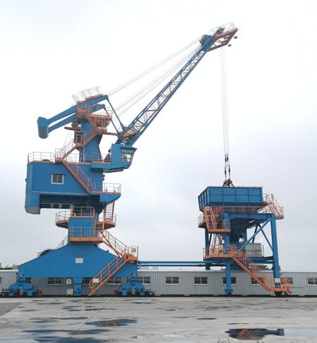 公司目前制造的门座式起重机从10t~50t,用于各类散货、杂件码头,如电厂、钢厂、矿山、物流码头等,给新老客户提供不同形式的安装以及改造服务。